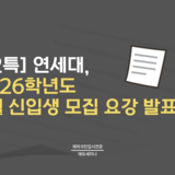 - 공지 국내대 (12특)연세대, 2026학년도 9월 신입학 모집요강 발표... 12년 특례생 '막바지 점검' 필수 연세대, 2026학년도 9월 신입학 모집요강 발표... 12년 특례생 '막바지 점검' 필수연세대학교가 ‘2026학년도 9월 신입학(후기) 재외국민전형&rs...