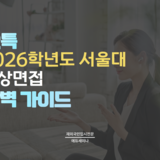 - 공지 국내대 (12특) 2026학년도 서울대 12특 '화상면접' 완벽 가이드 [입시 칼럼] 서울대 12특 화상면접 완벽 가이드: 서류형 vs 제시문형 준비 핵심서울대학교 12년 특례 전형은 서류 심사를 통과한 것만으로도 이미 전 세계 상위 1%의 역량을 입...